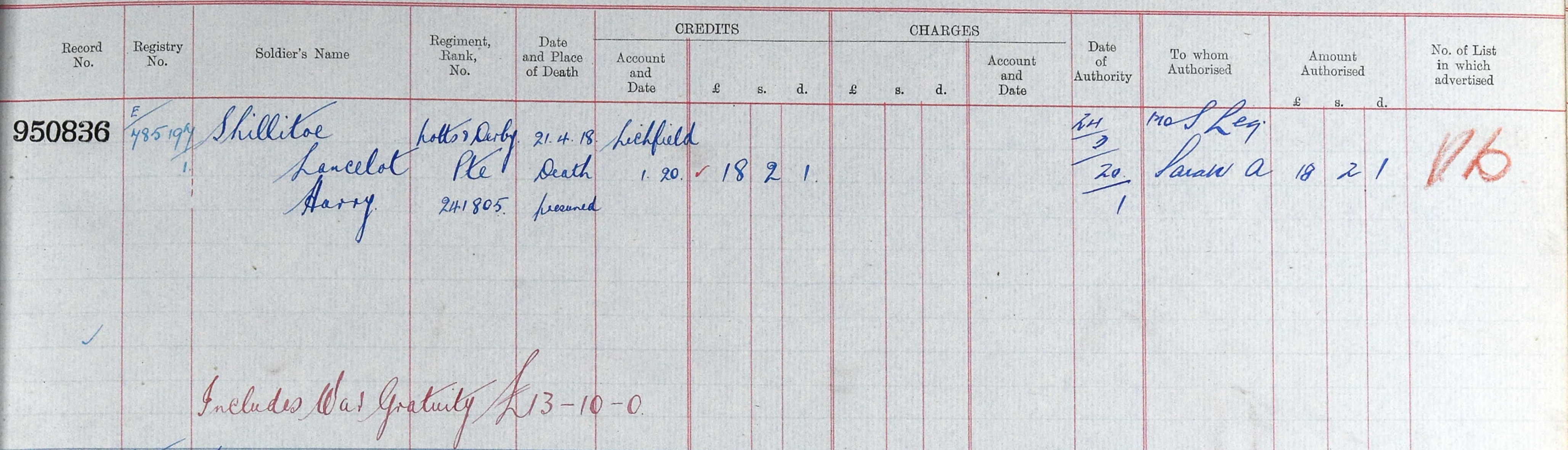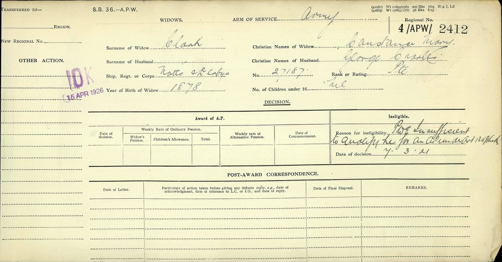 It would appear that George’s widow, Constance Mary, did not receive a pension.