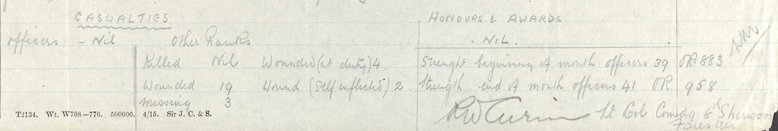 28.6.18 Trenches: 2/Lt W MEAKIN wounded in action.