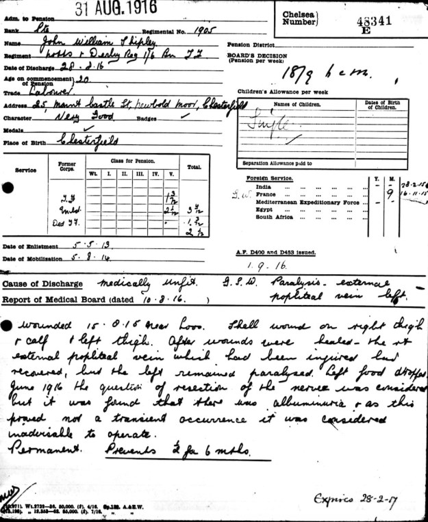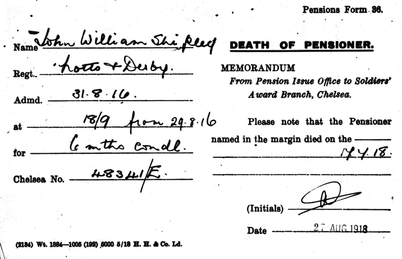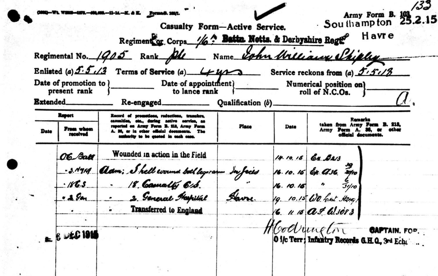 William Blood was transferred to Hospital in England and returned to the 1/6th Battalion in December 1918. He was demobilised in April 1919 having originally arrived in France in February 1918.