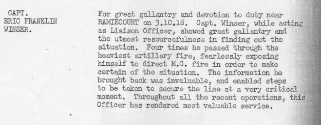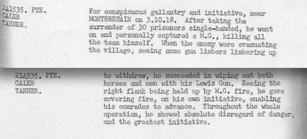1/12/18 LANDRECIES: The following decorations were awarded for gallantry and devotion to duty during the operations around RAMICOURT on 3/10/18.