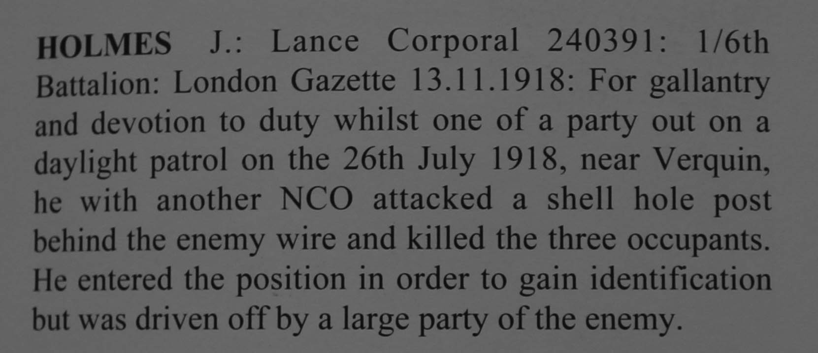 On this day 14th August 1918: Cpl Joseph Holmes awarded Military Medal