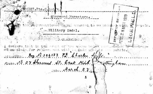 240804 Sgt Charles Greatorex. A tape weaver from Wirksworth. He enlisted in October 1914 ad arrived in France in 1916. served with “B” Company and was wounded on 8.3.17 at Pigeon Wood near Gommecourt