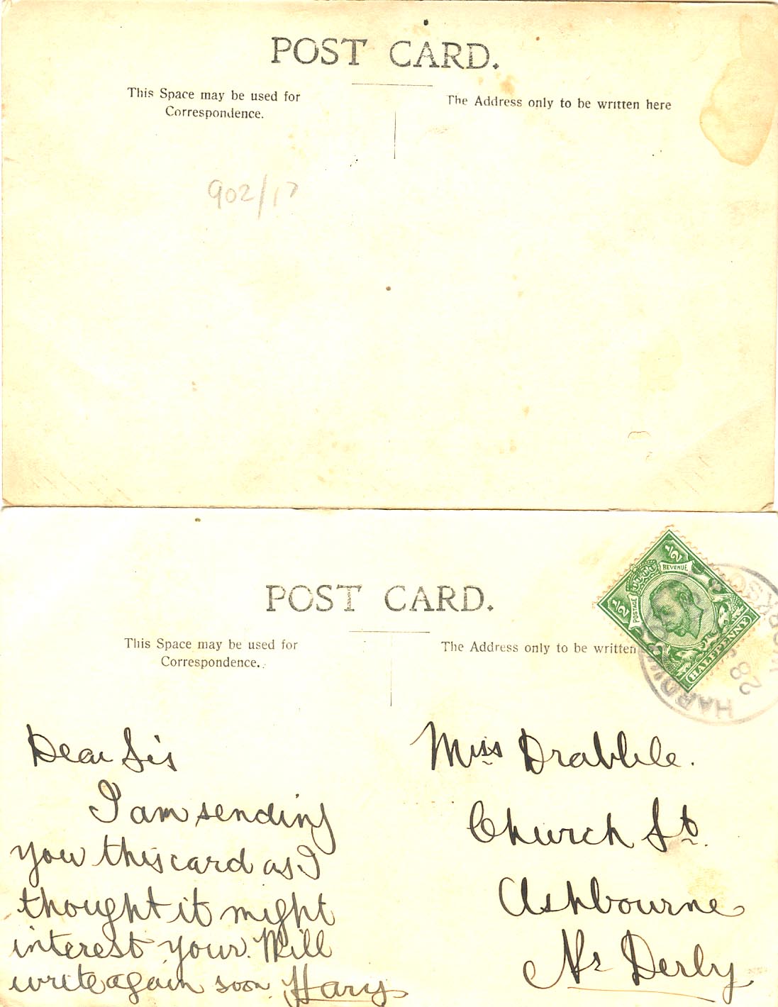 The second card bears a 1913 stamp and both share the same background.