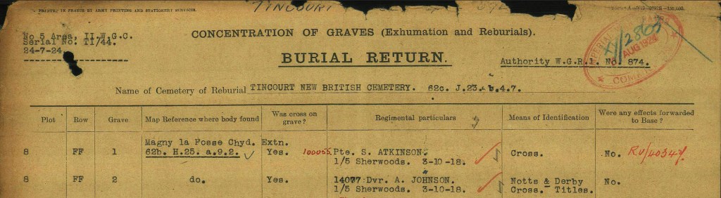 In 1924 Samual and Arthur’s bodies were exhumed and they were reburied in Tincourt Cemetery.