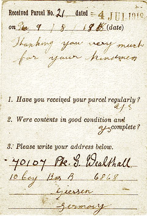 George was interned in Giessen POW Camp when he sent this card.