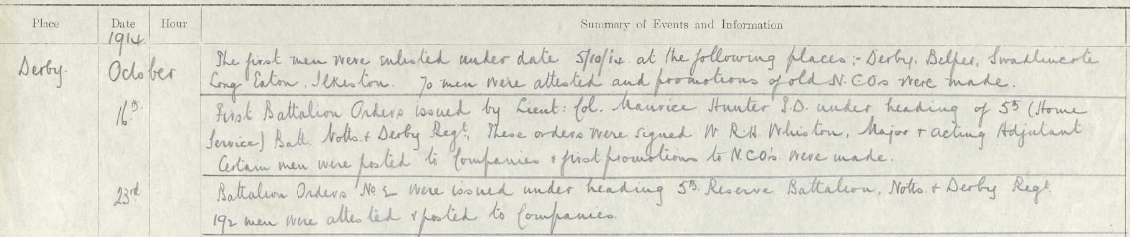 In 1916 this numbering system was used to transfer men from the Territorial Battalions of the Sherwood Foresters to the Regular and Service Battalions under Army Order 204/A.C.I. 1499.