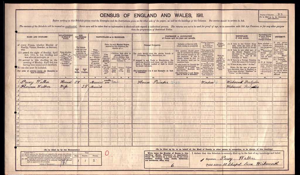 Born in 1882 in Wirksworth, Percy was a painter by trade, and by 1911 was living at 10 Chapel Lane with his new bride Florence.