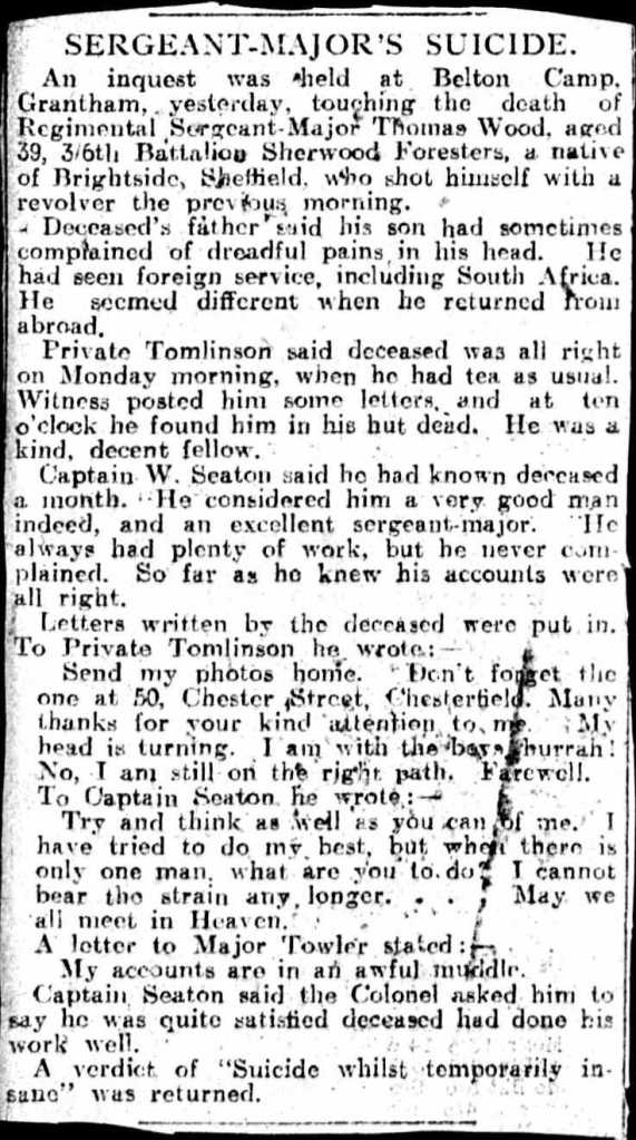 The tragic suicide of 3828 Company Sergeant Major Thomas Wood from Sheffield