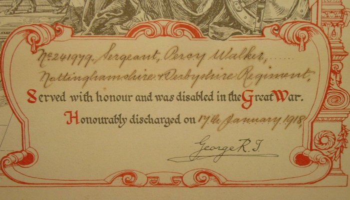 Percy was discharged in January 1918 aged 35 years and was awarded a Silver War Badge and a King’s Certificate of Discharge. He also received a pension.
