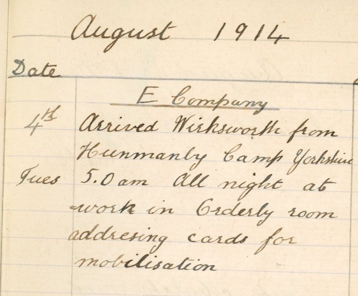 The reason being – War was declared and the men of the Sherwood Foresters quickly returned to their home station for mobilisation.
