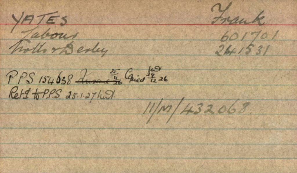Fred was still serving with the 1/7th Battalion at the time of the Territorial Force renumbering and was issued with the Regimental number 265172, which was with the block assigned to the 7th Battalion Sherwood Foresters (265001-305000).