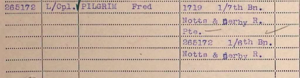 1719/265172 Pte Fred Pilgrim from Nottingham