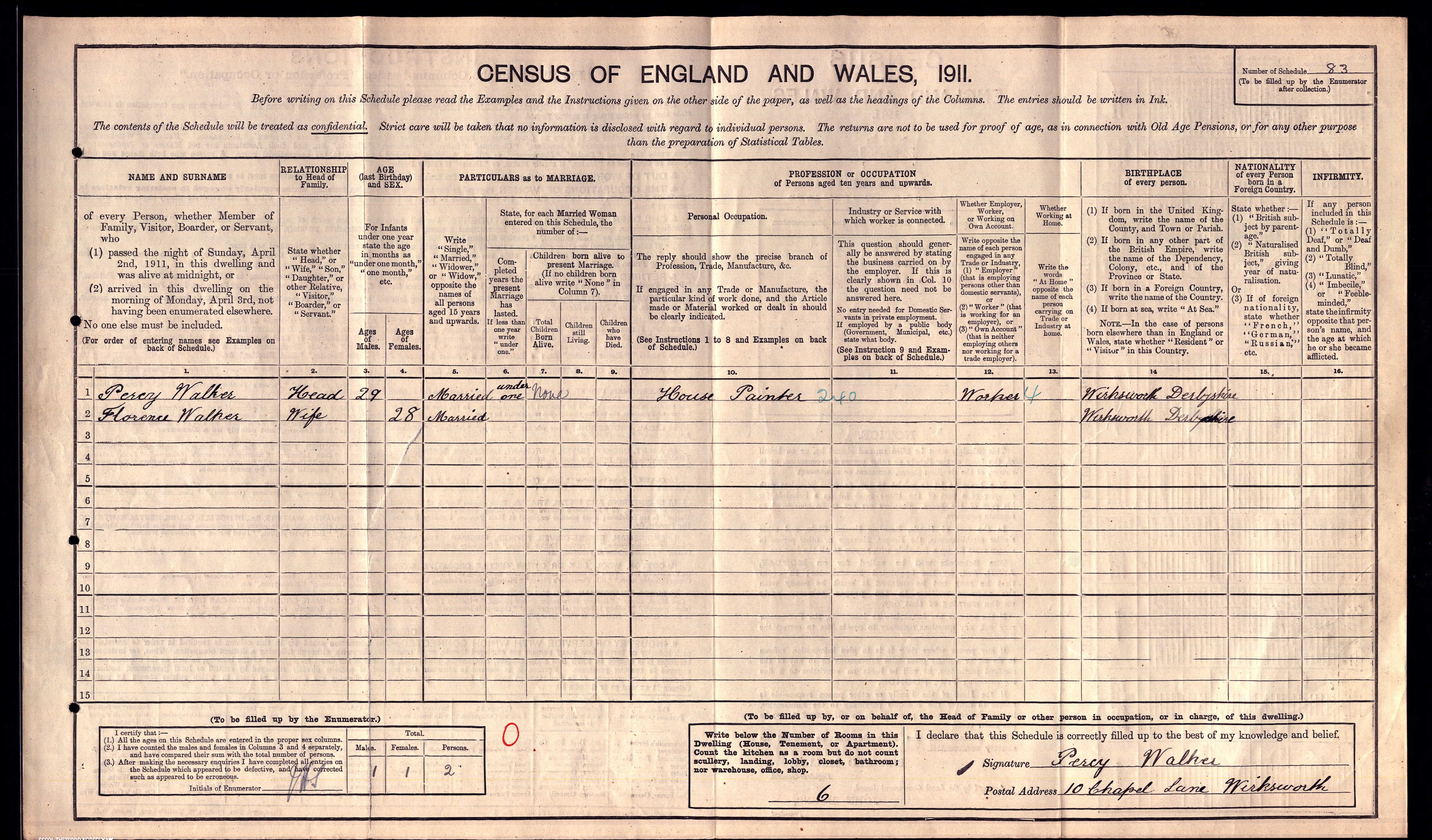 Born in 1882 in Wirksworth, Percy was a painter by trade, and by 1911 was living at 10 Chapel Lane with his new bride Florence.
