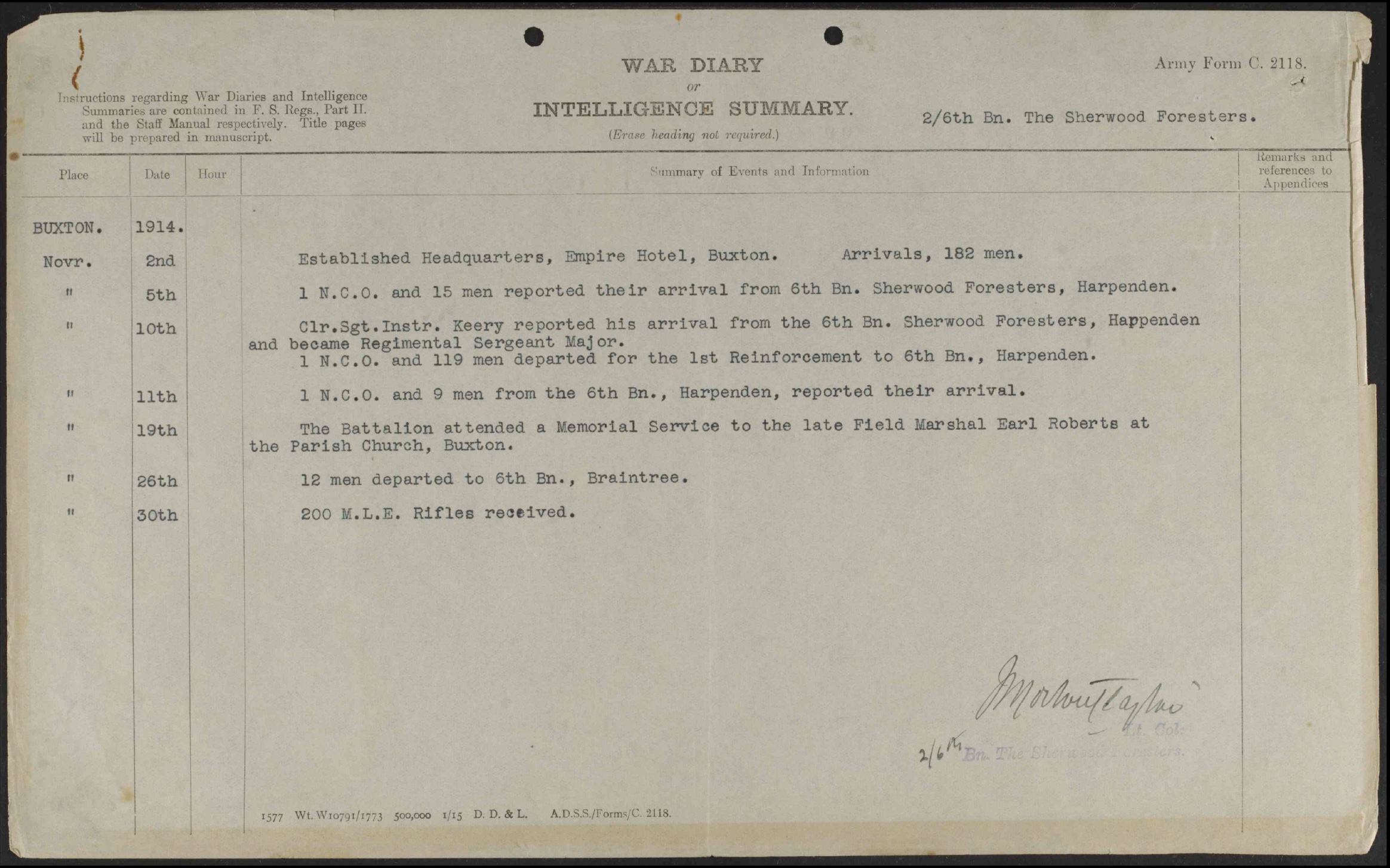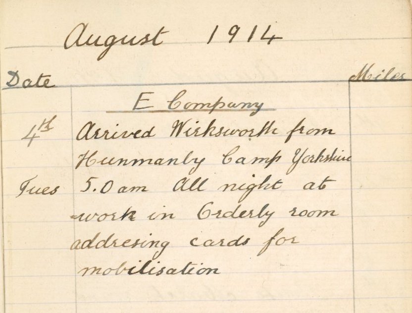 The reason being – War was declared and the men of the Sherwood Foresters quickly returned to their home station for mobilisation.