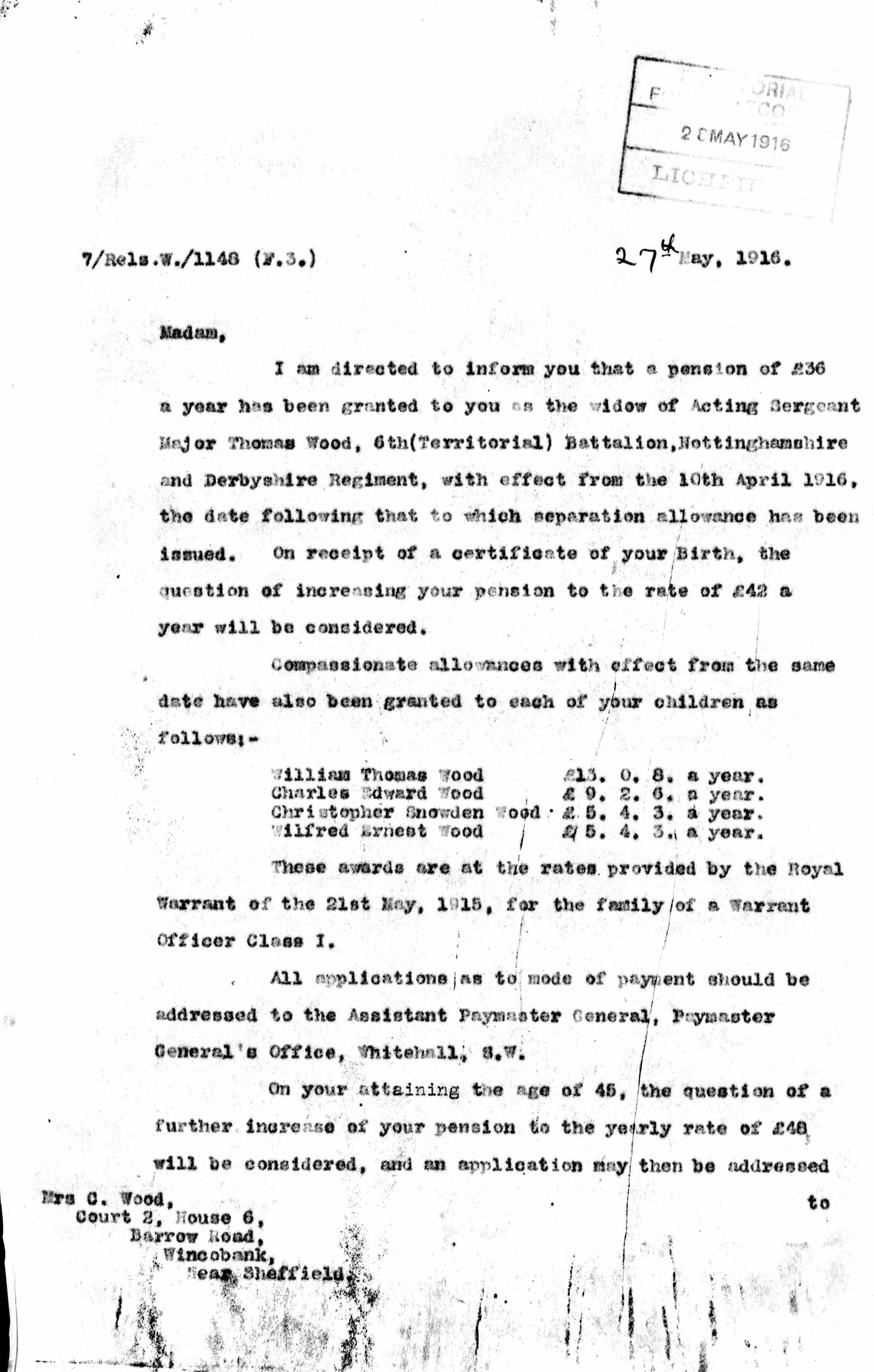 Thomas’s widow Catherine and their four young sons were awarded a pension.