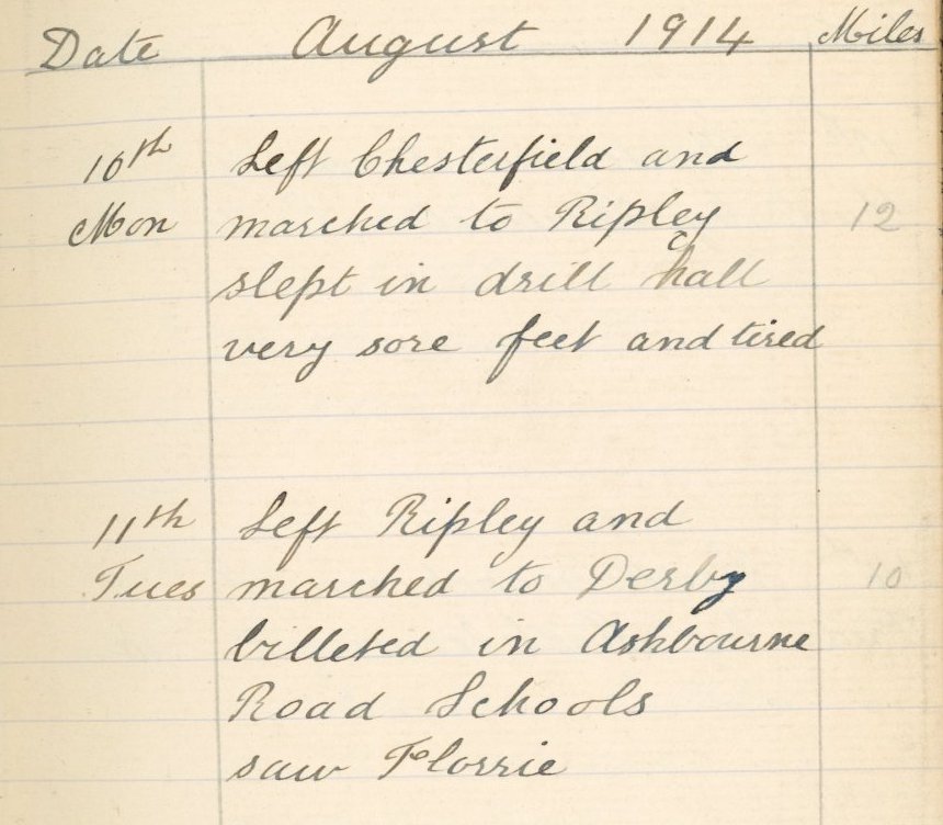 On the outbreak of the War Percy started to keep a diary, which now throws light on those early days of the War and the training undertaken by the North Midland Division in the Harpenden and Luton areas.