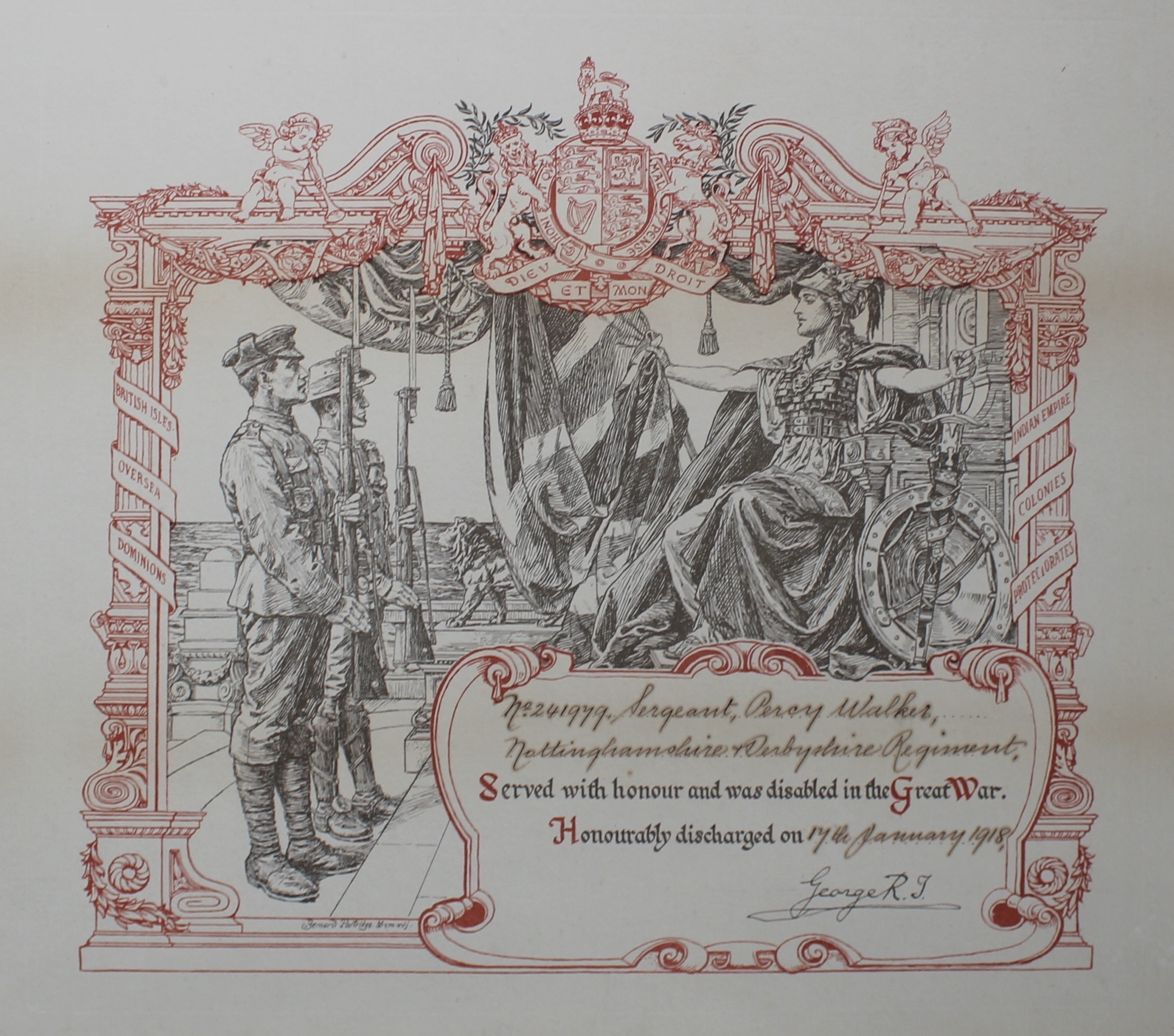 Percy was discharged in January 1918 aged 35 years and was awarded a Silver War Badge and a King’s Certificate of Discharge. He also received a pension.