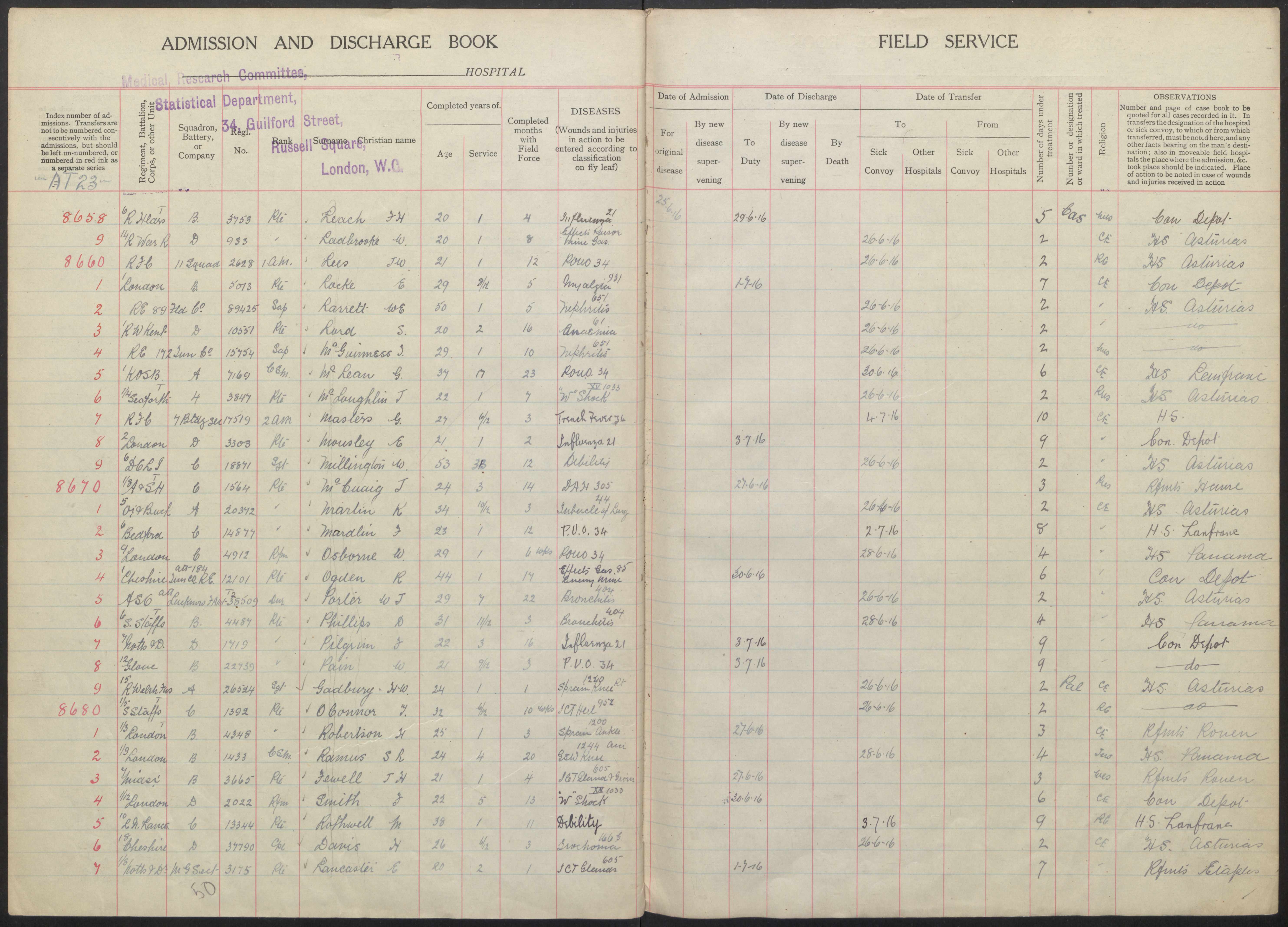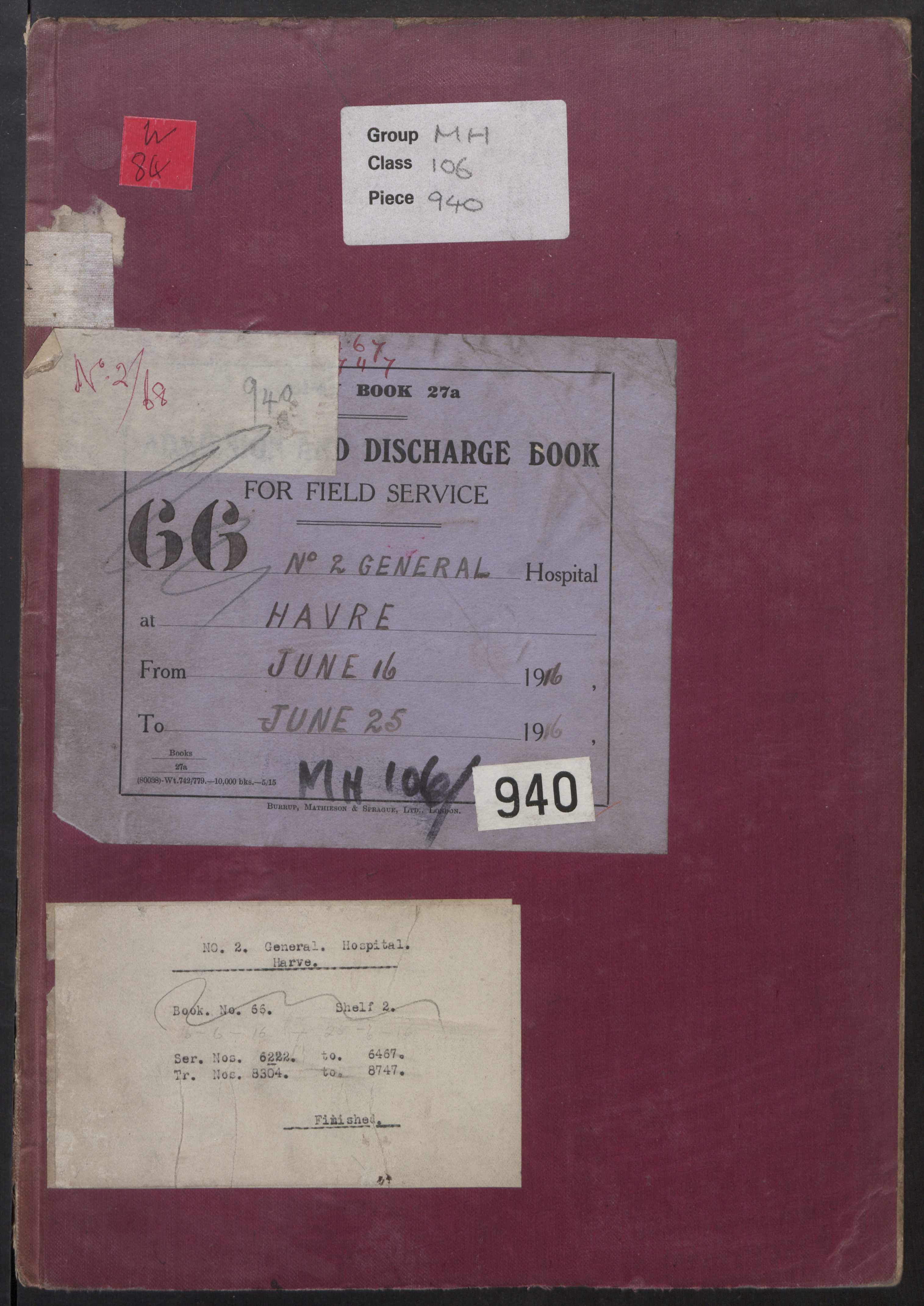 Fred was admitted with influenza to No2 General Hospital at Havre on the 25th June 1916 (?) suggesting that he missed the debacle that was the ‘1st day of the Somme’.