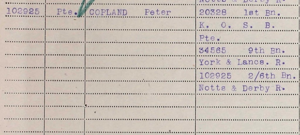 102925 L/Cpl Peter Copeland – 11th Battalion – actually served with the 2/6th Battalion after transferring from the KOSB in Spring 1918.