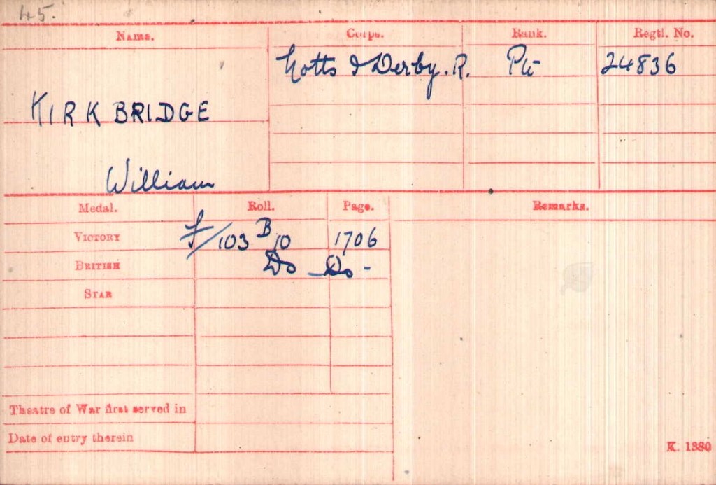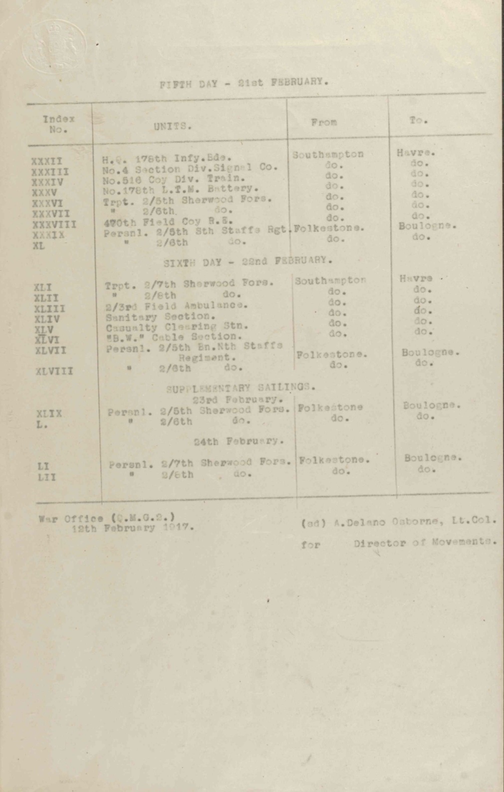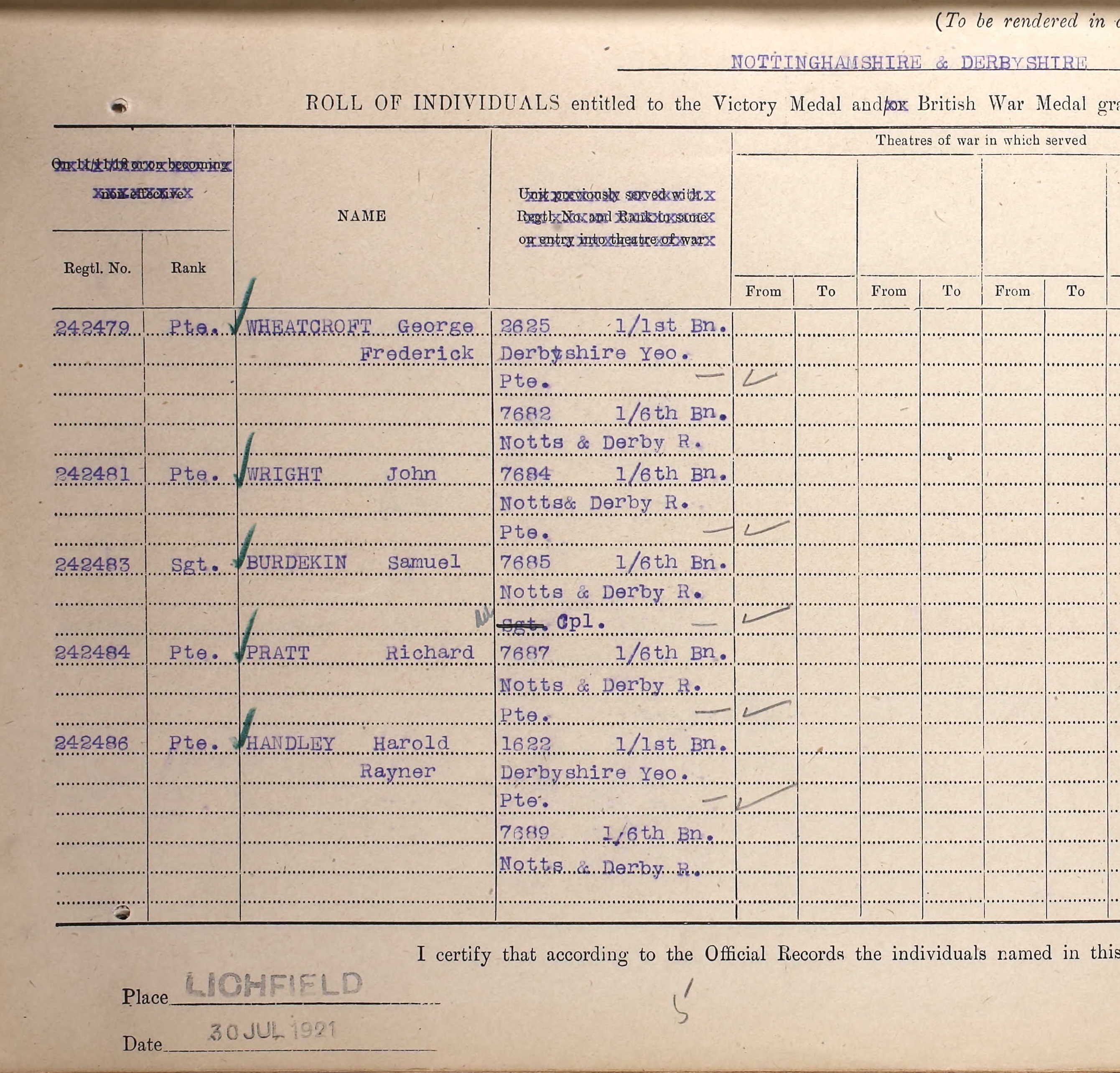 Samuel was one of approximately 93 men who were transferred to the 10th Battalion Sherwood Foresters from the Royal Flying Corps [date currently unknown]. He was subsequently posted to 1/6th Battalion.