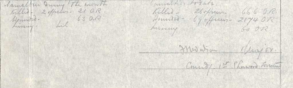 War Diary for entry for November 19171st Battalion casualties for November 1917 and the commutative total to date