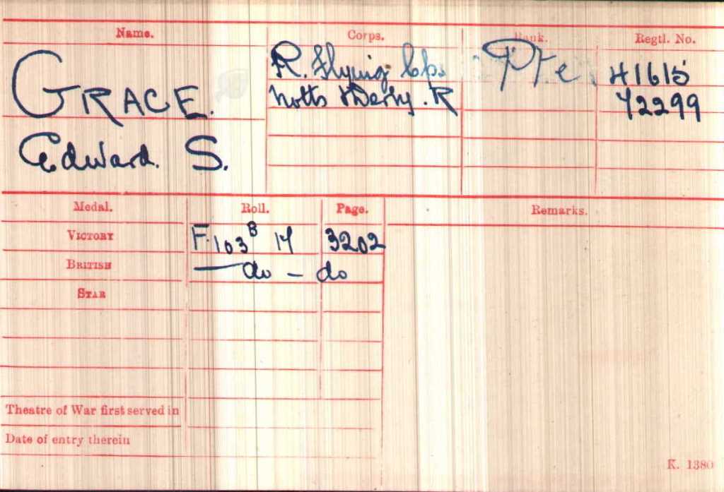 His Medal Index Card records that he served overseas with the Royal Flying Corps before his transfer.