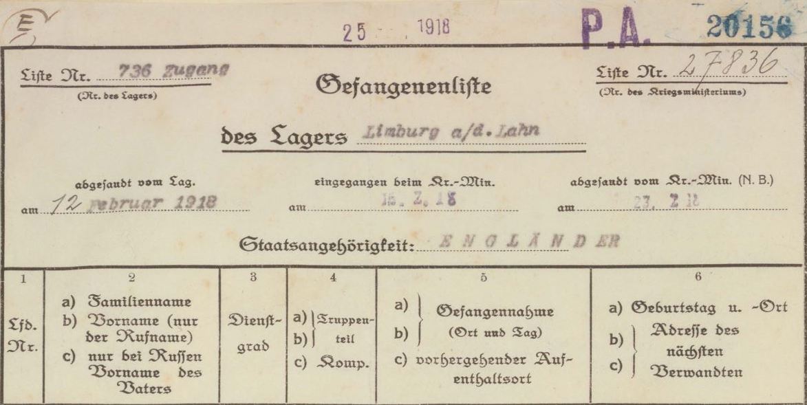 Joseph was later captured on the 4th December 1917 during the Battle of Cambrai and interned in Limburg POW Camp.