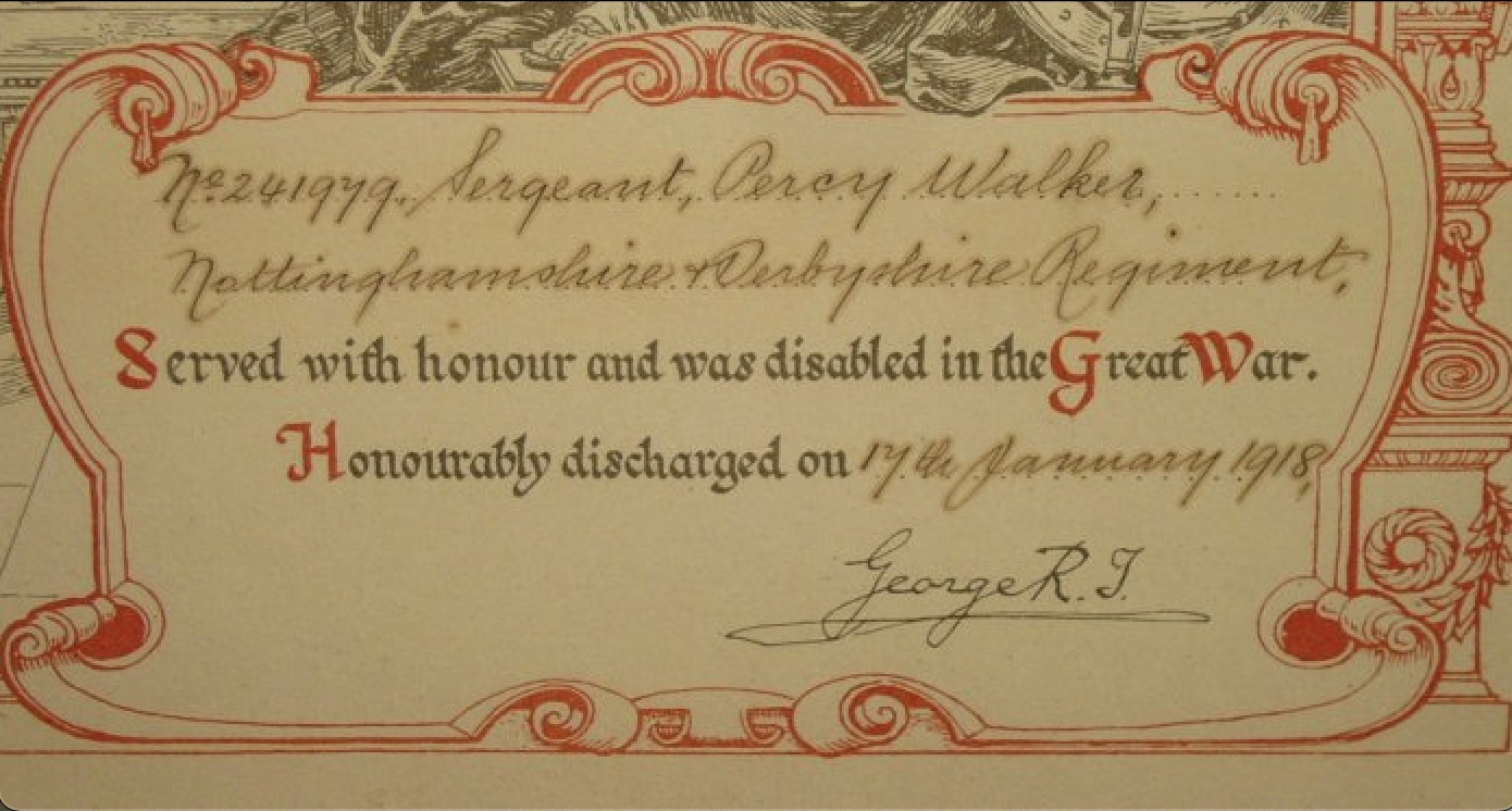 King’s Certificate of Discharge for Percy Walker (authors collection)