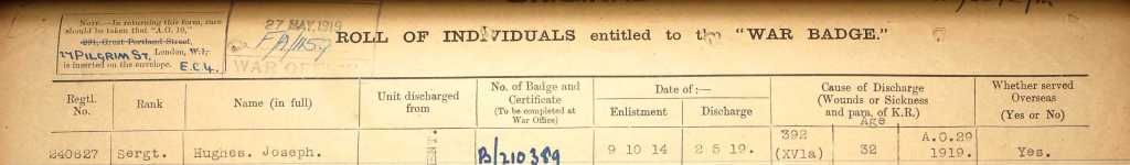 Joseph was discharged in May 1915 aged 32 and received a pension.
