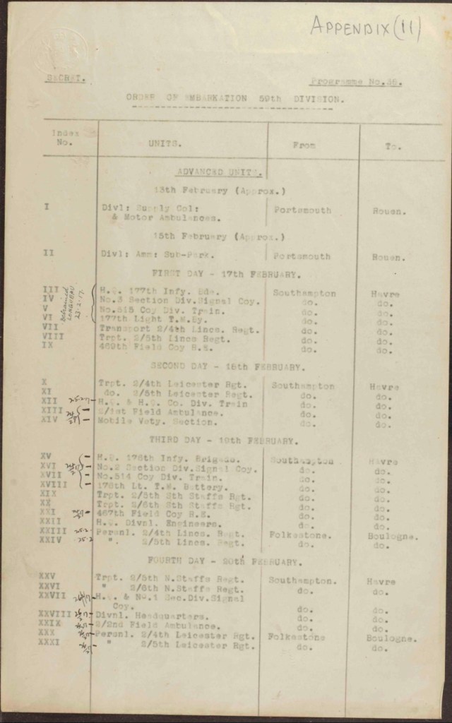 Herbert was called up for Service on the 16th November 1916 and posted to the 5th Reserve Battalion, The Sherwood Foresters two days later. Following training in Saltfleet he embarked for France on the 4th October 1917 and arrived at the 14th Infantry Base Depot. He was posted to the 1st Battalion and joined them ‘in the field’ on the 18th October.