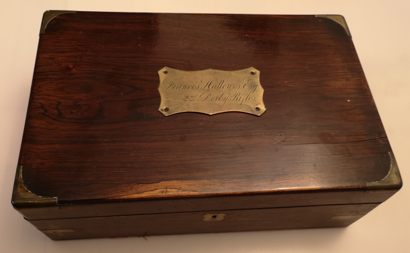 Undated list of Officers of the 1st Derby and 2nd Derbyshire (Chatsworth Rifles). Note that Francis Hallowes is not listed, but his relative Thomas Richard Francis Brabazon Hallowes is (note misspelling of his surname). TRFBH Hallows was Commissioned into the 6th Dragoon Guards in 1873.