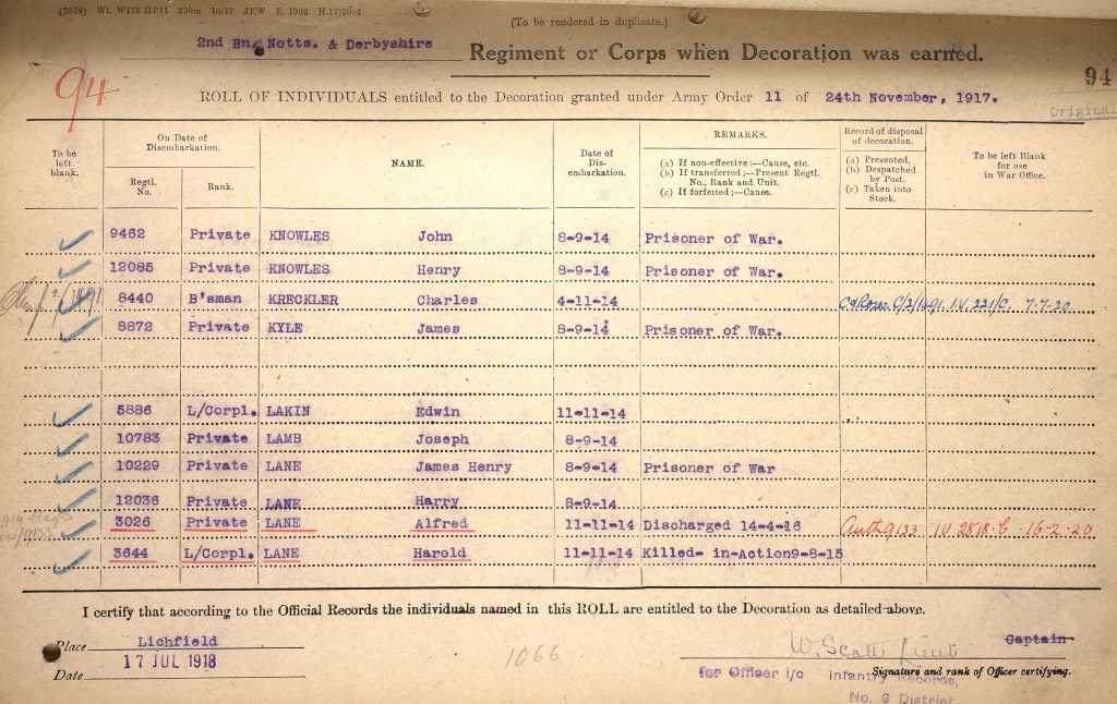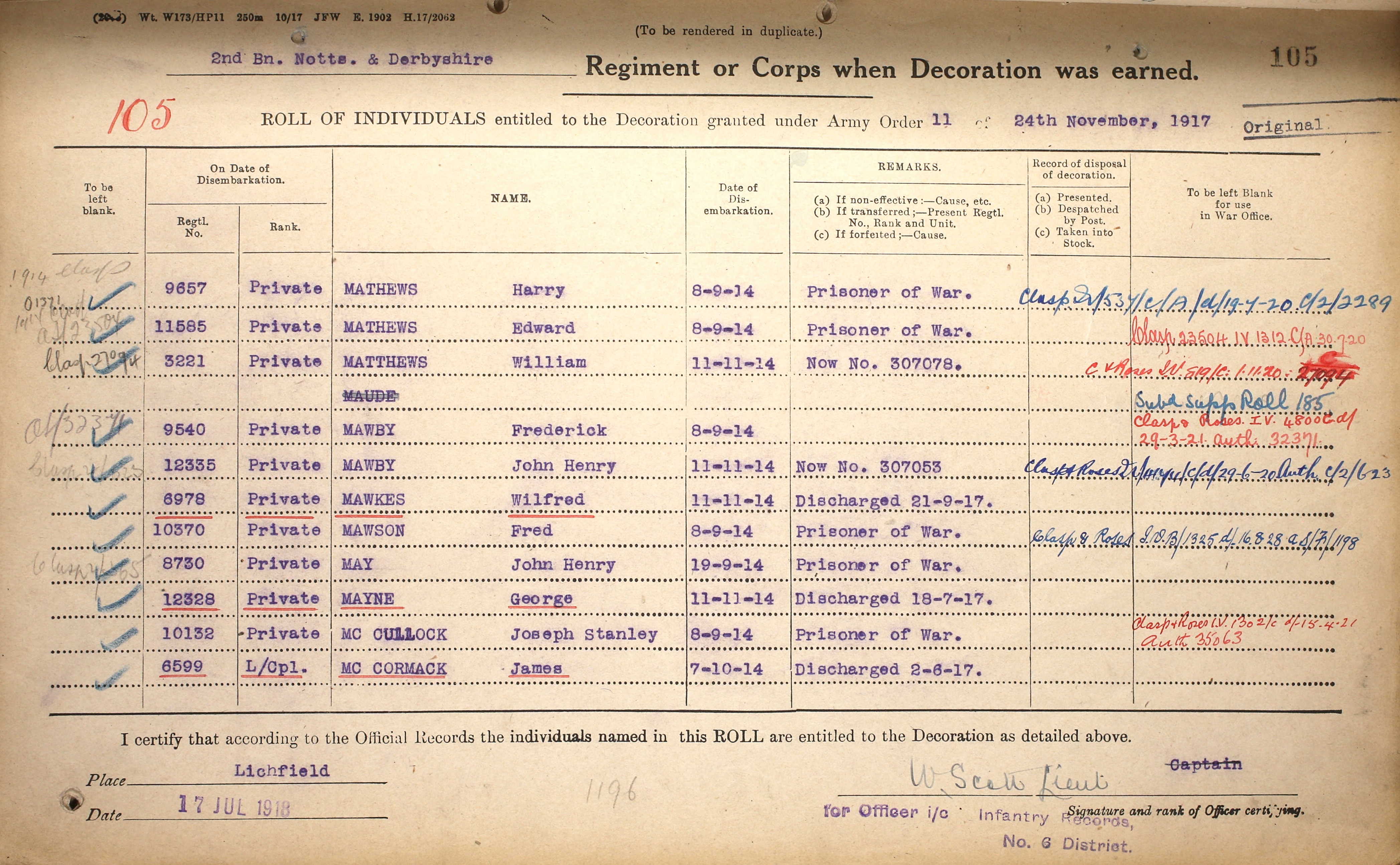 305752 Cpl Harold Tyne DCM was from Southwell and arrived in France in May 1915. See here.