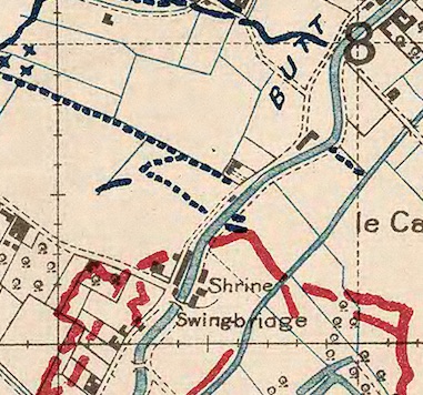 The War Department trench maps shows that this was a very heavily defenced area and well-known Pill Boxes such as Kit and Kat and Anzac are recorded.