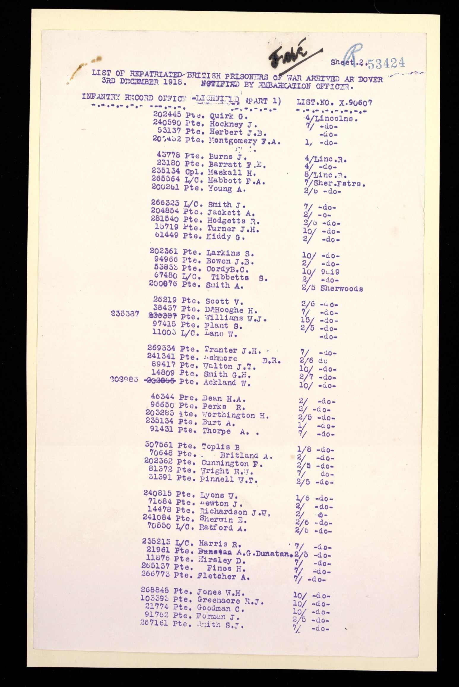 Joseph – along with other men of the BEF – was released from captivity and returned to the UK. I have not traced his name on any repatriation lists, but man of the 2/6th men captured on the 21st March were repatriated in November and December 1918.