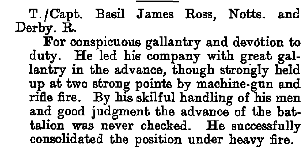 Basil James Ross joined the Sherwood Foresters in 1915 and was wounded on the 3rd September 1916.