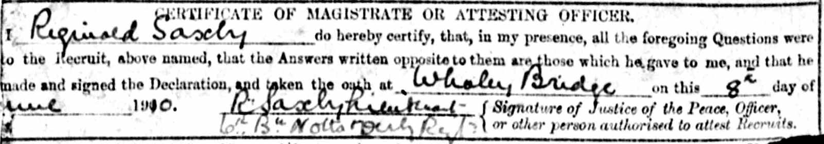 Reginald Saxby, Lieutenant, 6th Notts & Derby