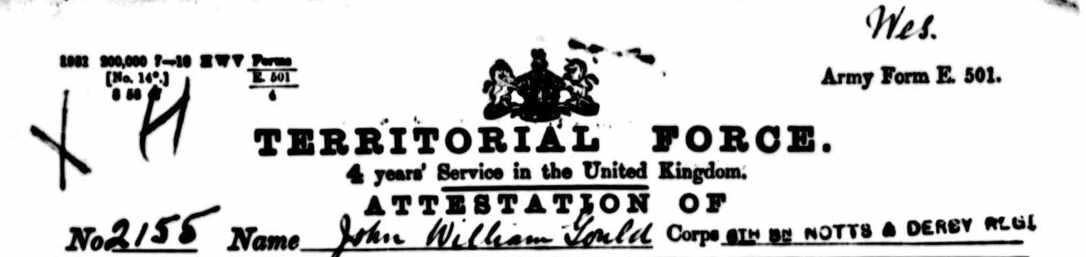 2155 L/Cpl John William Gould. A joiner from Whaley Bridge. DNSO; Disc 22.2.15 (sickness)*.