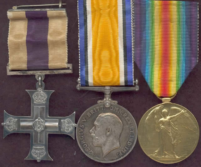 M.C. London Gazette 17 December 1917; citation: 23 April 1918. ‘For conspicuous gallantry and devotion to duty when in command of his company after his company commander had been wounded. He captured his objective and reorganised. When counter-attacked, with both flanks in the air, he not only held his position but was able to collect all stragglers and reform the line. This was carried out under very heavy enemy barrage.’