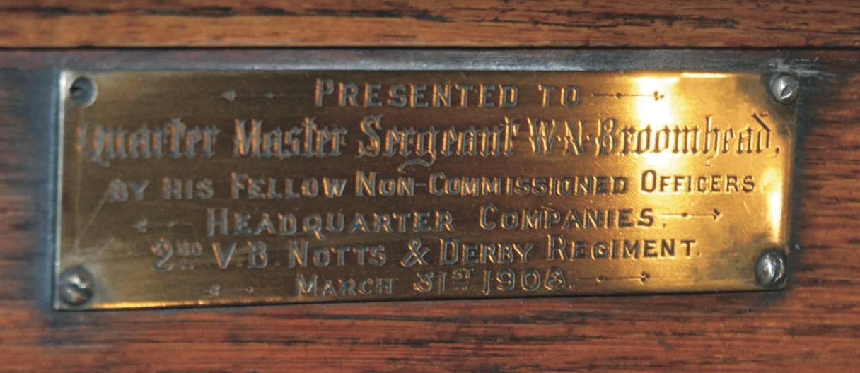 I recently purchased William North Broomhead’s medal group and have found several photos on here of him at various summer camps and in France. Also some pics of his Officers Papers. Do you mind me asking if you have all these? I would really like a copy of them if you do (sorry to sound cheeky). Also, do you know the whereabouts of the brass plate?