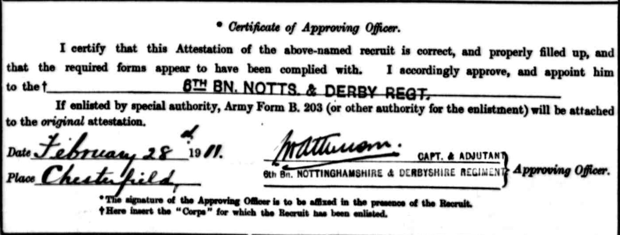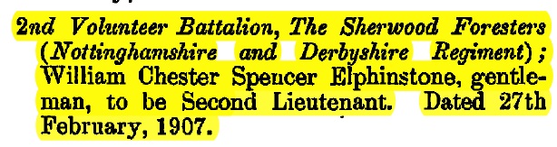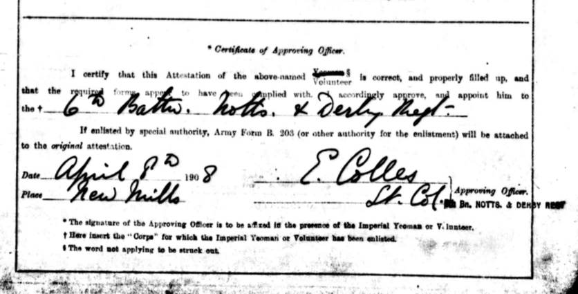 - Recorded in the 2nd Vol Bn Sherwood Foresters Gazette of April 1st 1903 that he was appointed Lance Corporal on 1st March 1903 with “F” Company.