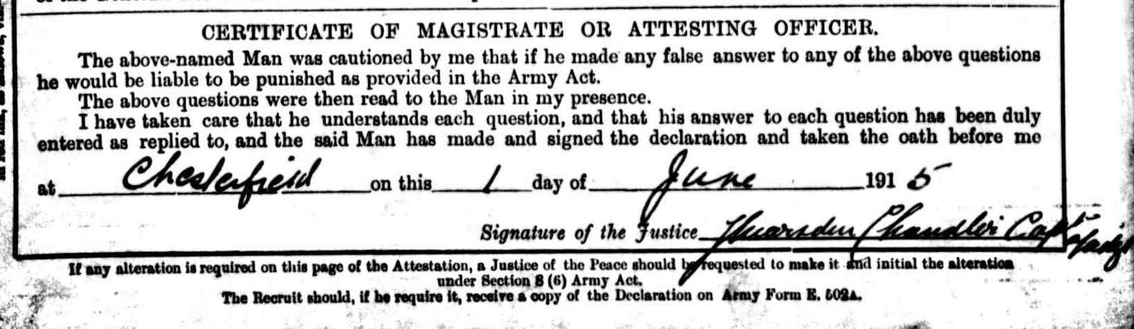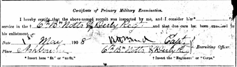 - Recorded in the 2nd Vol Bn Sherwood Foresters Gazette of November 1st 1903 that he was awarded proficiency certificate in July 1903 with “F” Company.