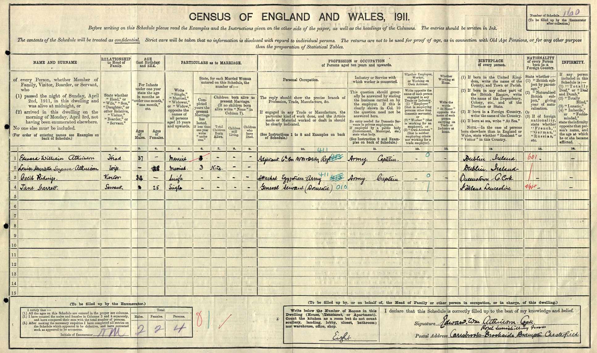 In the 1891 Census he is listed as a Captain in the 2 VB The Derbyshire Regiment. At that time he was living with his uncle, Edward Hall, at Horwich House in Chapel-en-le-Frith and was a billiard table manufacturer.