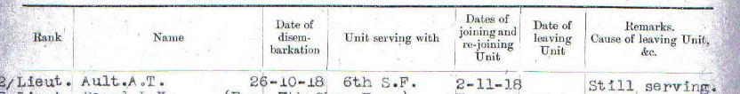 Commissioned 2nd Lieutenant in March 1918, arrived in France on 26th October 1918 and joined 1/6th Battalion on the 2nd November 1918.