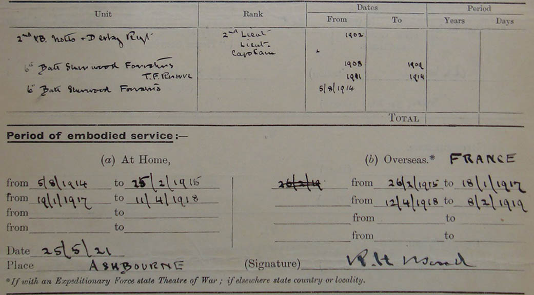 A copy of his service records would be fantastic. I can also email you his obituary from The Derbyshire Times if it’s any use?