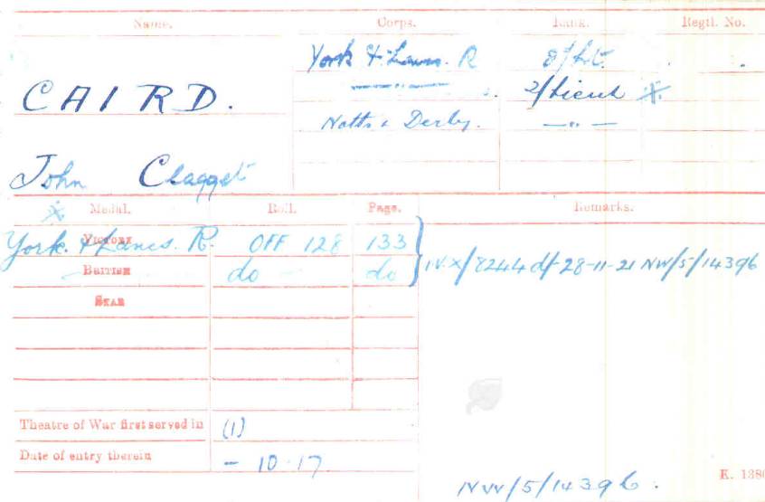 Transferred from the 7th Sherwood Foresters on 30th January 1918.