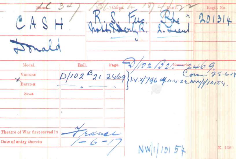 Arrived in France on 7th May 1917.