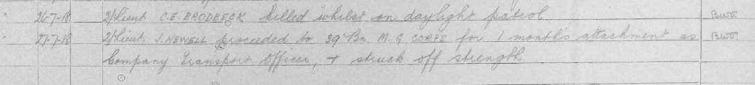 Joined 1/6th Battalion on the 3rd July 1918; transferred to the 9th Battalion on the 23rd July 1918.