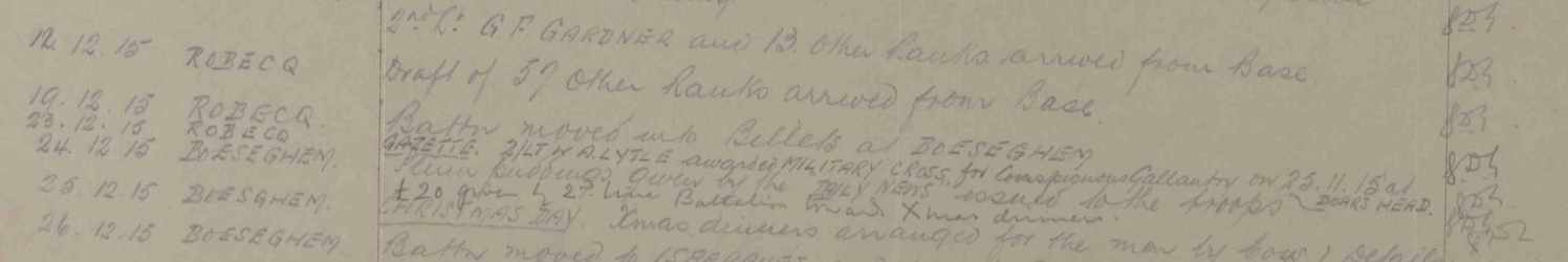 He was initially attached to the 9th Entrenching Battalion before going the 1/6th Battalion ‘in the field’ on the 12th December 1915.