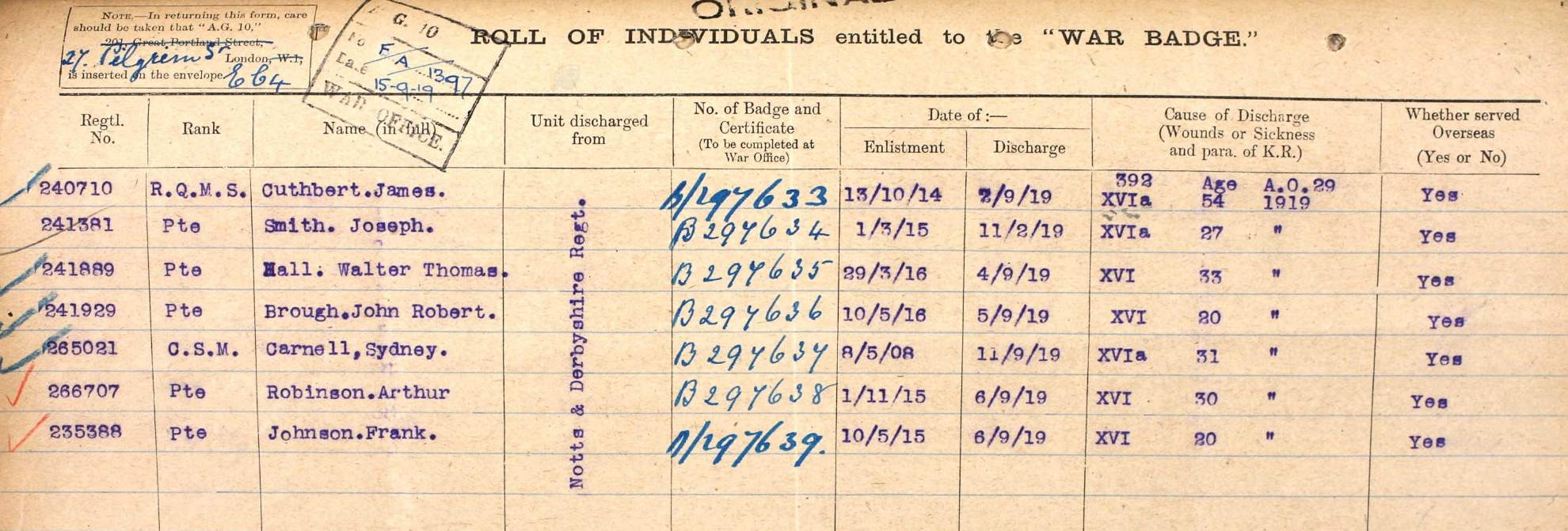 5403/241889 Pte Walter Thomas Hall An April 1916 Recruit to the 3/6th Battalion Arrived in France in 1916 and posted to the 1/6th Battalion British War Medal awarded to Walter Hall Only served overseas with the 1/6th Battalion Discharged in September 1919 aged 33 and awarded the Silver War Medal Share this: Click to share on Facebook (Opens in new window) Facebook More Click to share on X (Opens in new window) X Like Loading...