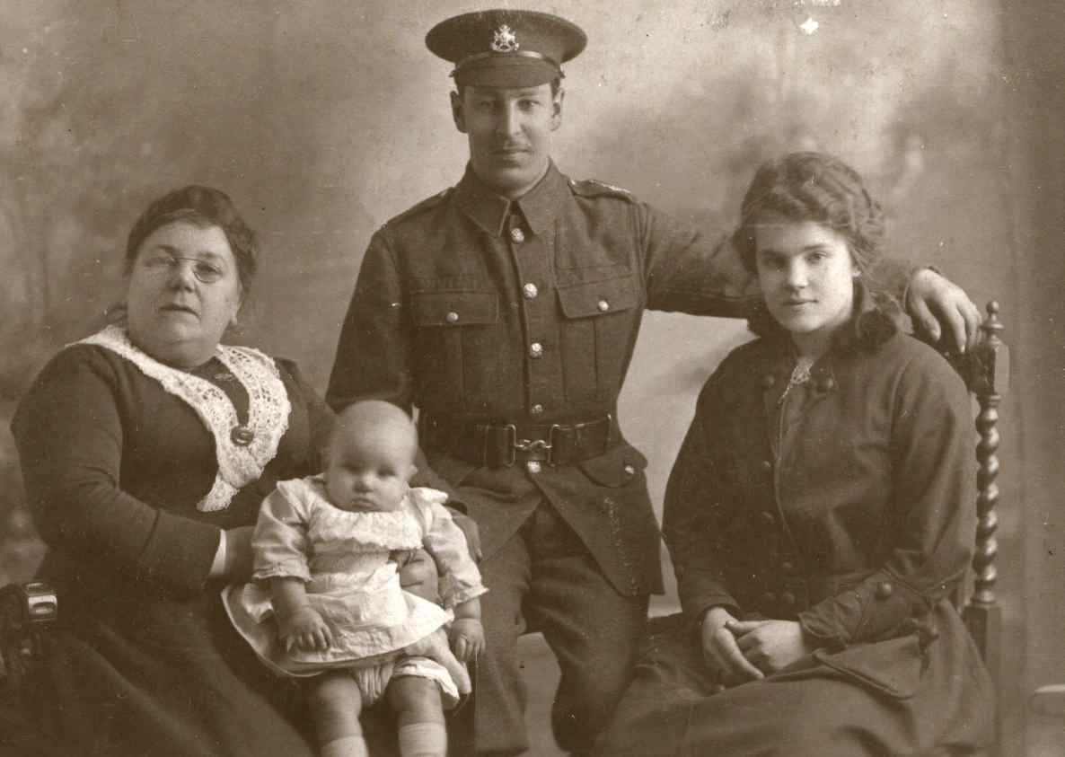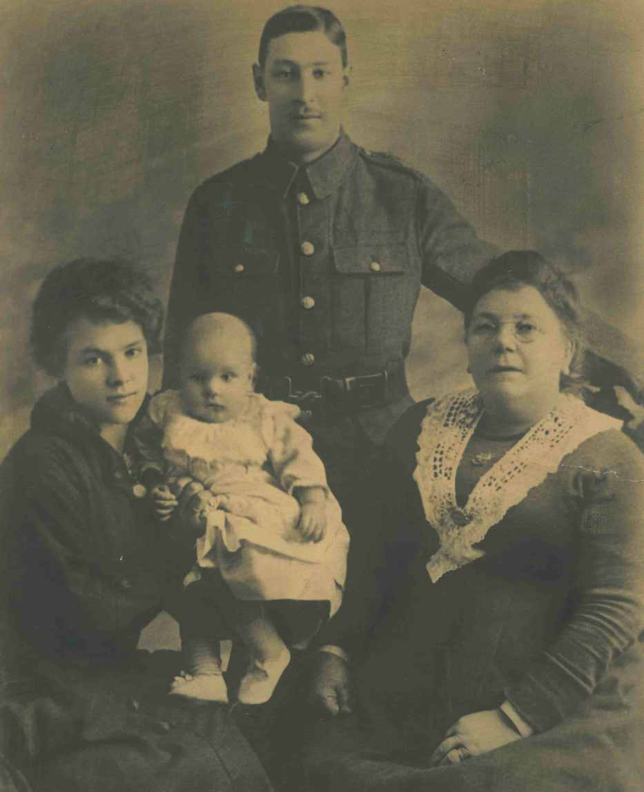 Harry with his wife wife Florence, mother-in-law Polly Sykes and baby son Harry J Baker born 8th September 1916